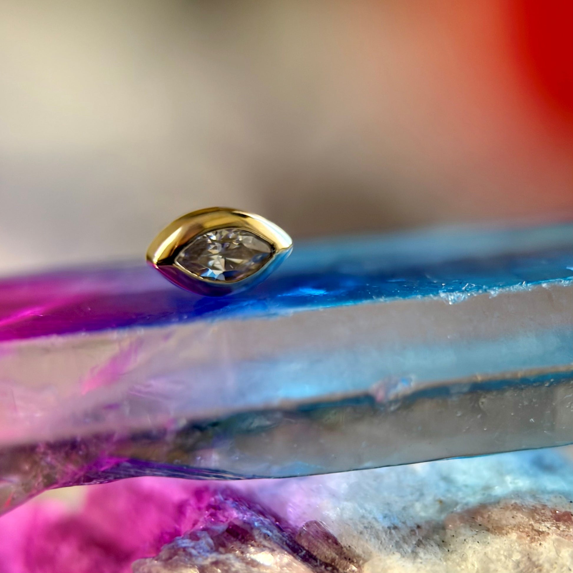 14K Solid Gold Threadless Jeweled Top 4x2.5mm with Swarovski Zirconia - Almond